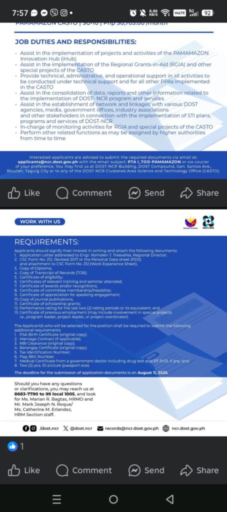 DOST Notice of Vacant Positions August 9, 2025August 9, 2025 [Notice of Vacant Position] PTA I-PAMAMAZONDownload