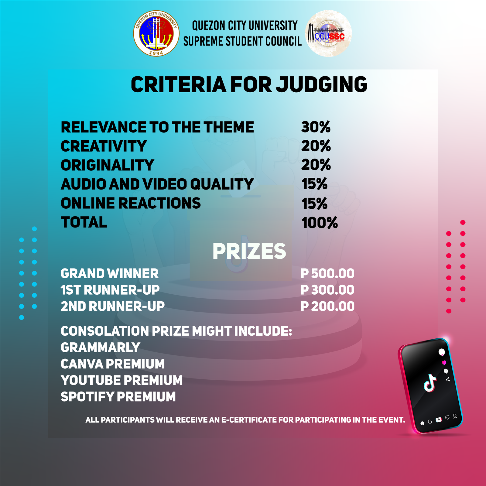 As the national election is fast approaching, the youth plays an important role in this upcoming event. As of July 2021, there are a total of 31.41 million voters classified as the youth vote. We, the QCU Supreme Student Council, are encouraging you all to showcase your hidden talents by creating an informative Tiktok video. This challenge is entitled “𝐄𝐥𝐞𝐜𝐭𝐢𝐨𝐧 𝟐𝟎𝟐𝟐: 𝐘𝐨𝐮𝐫 𝐯𝐨𝐭𝐞 𝐢𝐬 𝐲𝐨𝐮𝐫 𝐟𝐮𝐭𝐮𝐫𝐞” which aims to empower and promote voter education to our fellow QCians.