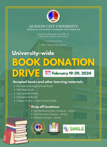 Calling the attention of all books loving QCU Students, Faculty Members, Administrative Employees, and Alumni! Join us in spreading the joy and gift of knowledge by sharing your gently used...