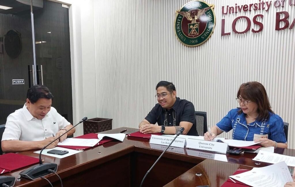 The MoU signing took place at the UPLB Office of the Chancellor Executive Conference Room and was attended by QCU President Dr. Theresita V. Atienza and UPLB Vice Chancellor for Community Affairs Atty. Eric Paul D. Peralta.
