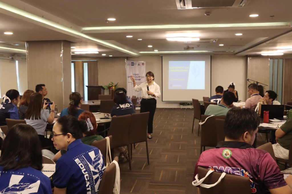 The training included discussions on Effective Local Capacity Strengthening, with Dr. Theresita Atienza, QCU President, leading the session. Participants learned about the importance of understanding local systems and developing community programs that address education, employment, health, and justice for OSYs. There was also a discussion on the five key functions of management—Planning, Organizing, Staffing, Coordinating, and Controlling—providing participants with a solid foundation in project management.