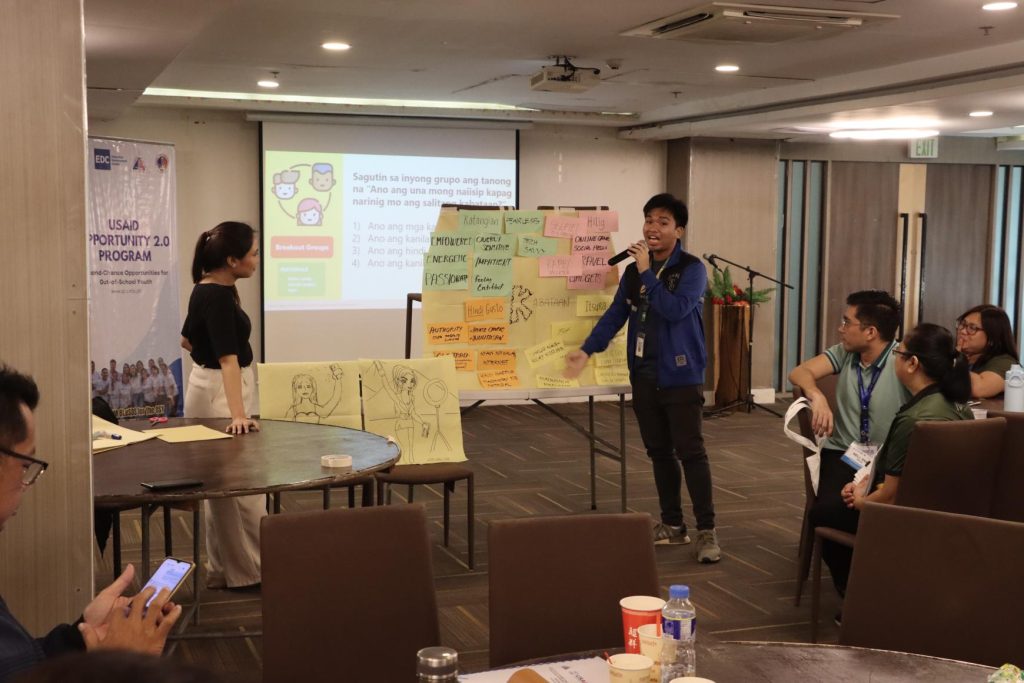 Mr. Kristofer Kliatchko and Ms. Raphaella Navarrosa from the USAID-Education Development Center (EDC) then delivered insightful presentations on how to view youth as assets and partners rather than problems to be solved. The session included thematic analysis and discussions on engaging youth through mentoring, career guidance, and enabling environments.