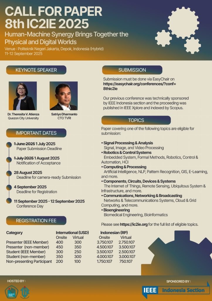 Interested faculty may submit via EasyChair portal. Full conference information is available at https://ic2ie.orgor via email at ic2ie@pnj.ac.id.