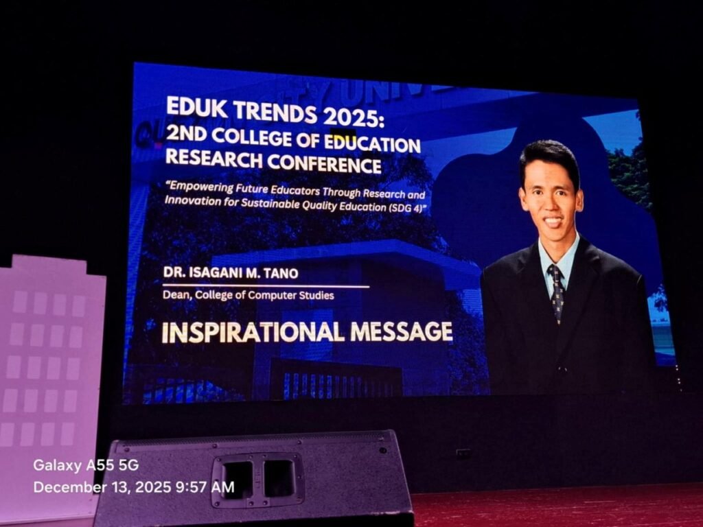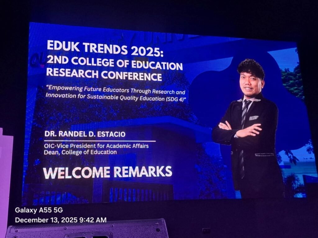 The EDUK TRENDS 2025: 2nd College of Education Research Conference was held at the Quezon City University Auditorium, with the theme: “Empowering Future Educators Through Research and Innovation for Sustainable Quality Education (SDG 4).”