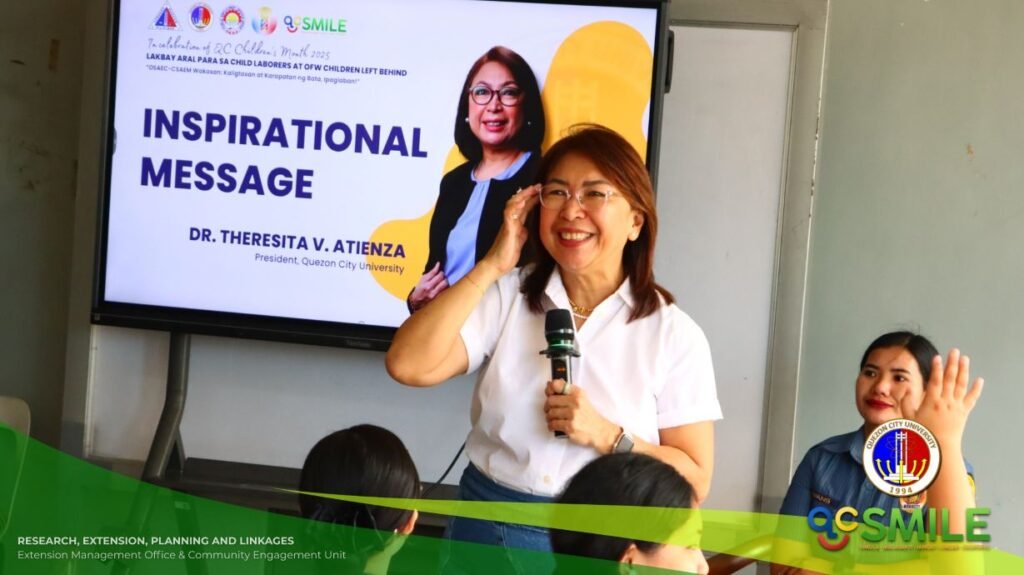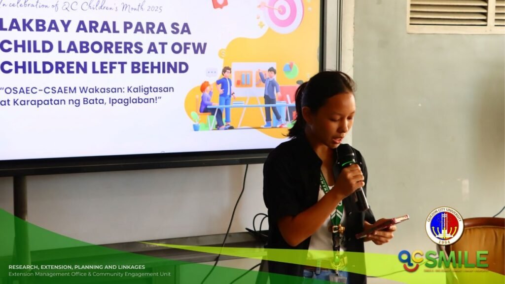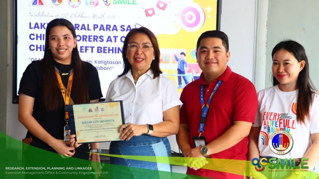 Last November 22, 2025, Quezon City University, in partnership with the Quezon City Public Employment Service Office (QC PESO), welcomed nearly 100 child beneficiaries from various barangays in celebration of the 2025 National Children’s Month.
