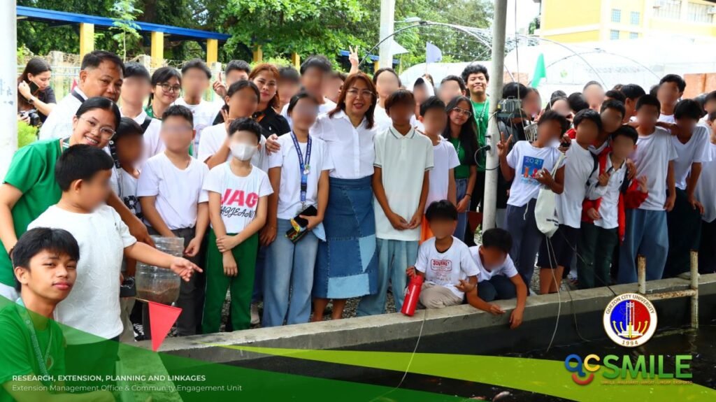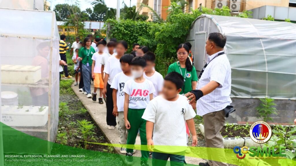 During the visit, QCU Kampus Ambassador Carl Sevilla presented information on the university’s scholarship programs, while fellow ambassador Johanna Duyag shared a heartfelt testimony about her own journey as a scholar and her experiences as a QCU student. The children then participated in a guided tour of the campus, culminating at the Center for Urban Agriculture and Innovation, where they planted seedlings and fed the fish. NSTP SBAC 1B students also served as guides, ensuring that all participants felt welcomed and supported throughout the visit.