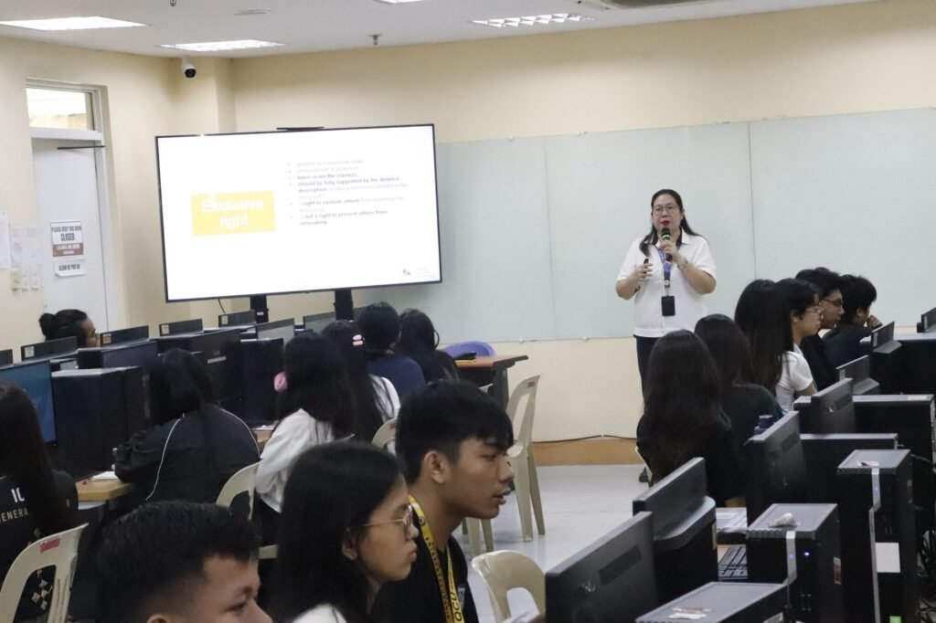 The training was led by Ms. Maria Aura C. Impang, General Manager of QCU-ITSO, who facilitated a combination of lectures and hands-on activities aimed at strengthening students’ understanding of intellectual property.