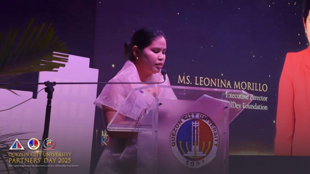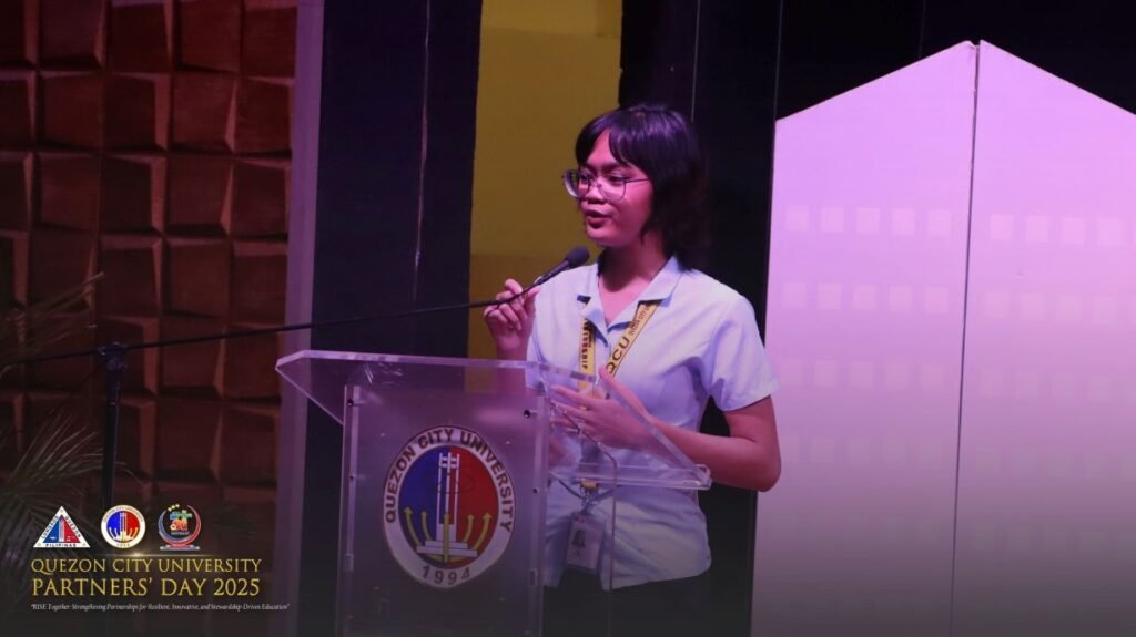 Impactful testimonies were shared by Ms. Leonina Morillo, Executive Director of the PhilDev Foundation, on behalf of industry partners; Divine Grace G. Papa, BSIT alumna and UI/UX Designer at Hytec Power Inc., representing QCU alumni in industry; and Candid Summer Dayne C. Sanchez, a former out-of-school youth and community beneficiary now a 1st Year BS Entrepreneurship student of QCU, whose story reflected the life-changing impact of QCU’s programs.