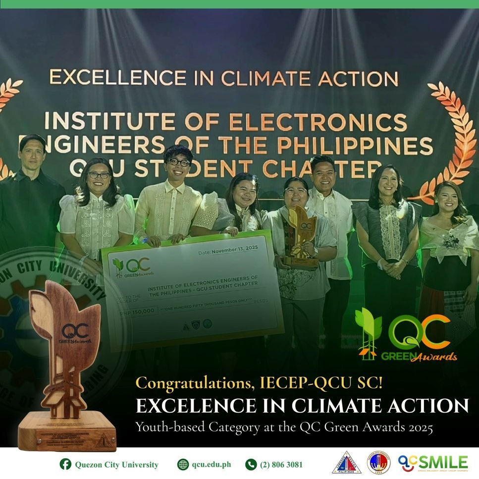 The honored organizations were the Philippine Institute of Industrial Engineers – Operations Research Society of the Philippines (PIIE–ORSP) QCU Student Chapter and the Institute of Electronics Engineers of the Philippines (IECEP) – QCU Student Chapter, both of which showcased impactful, youth-led solutions addressing climate and environmental concerns.