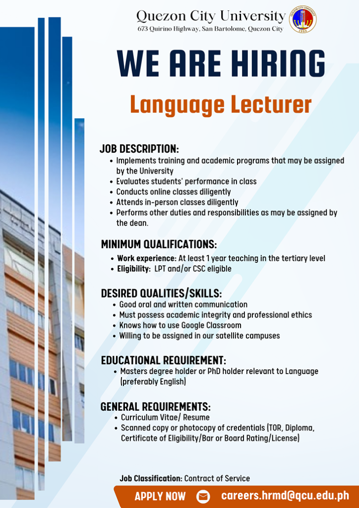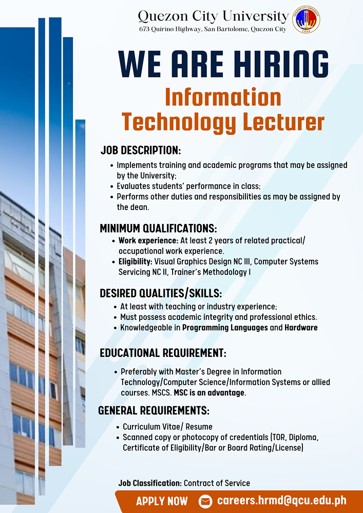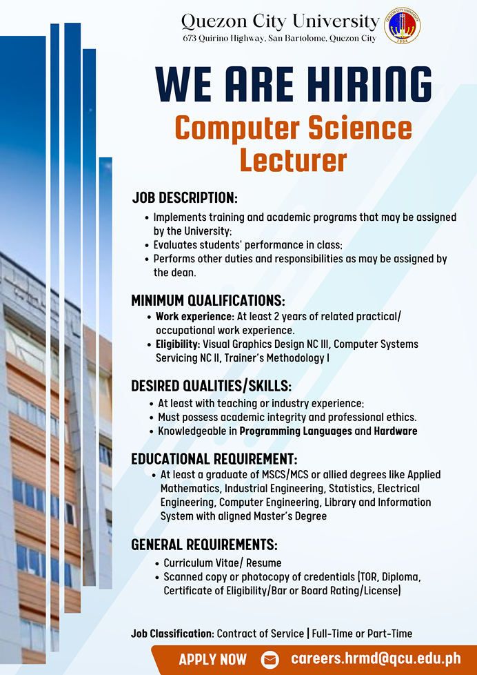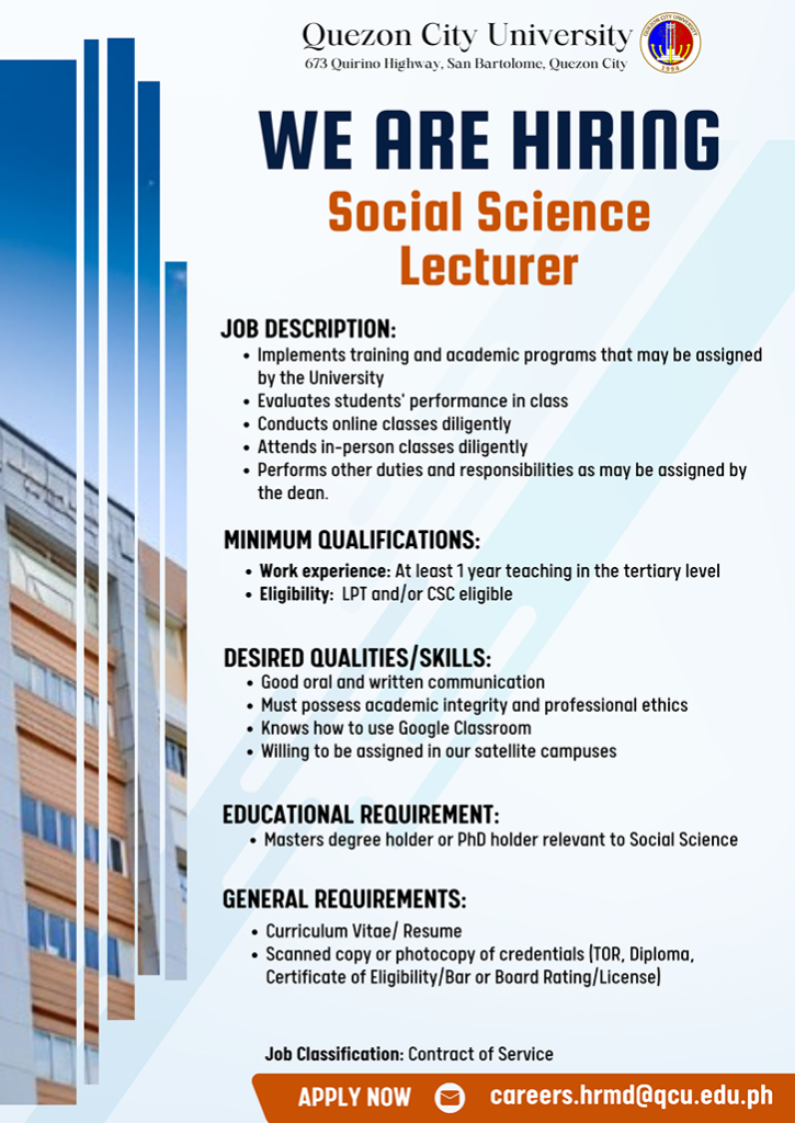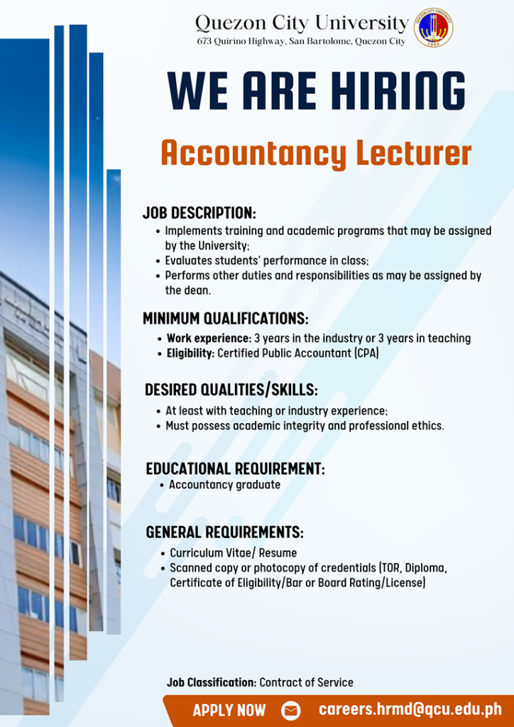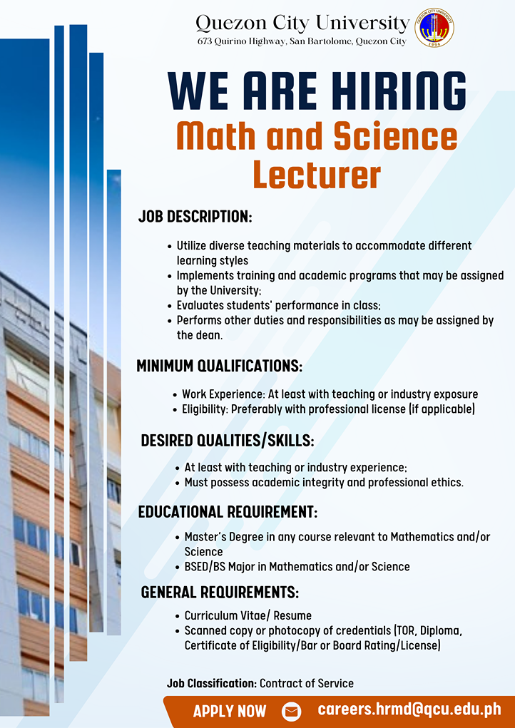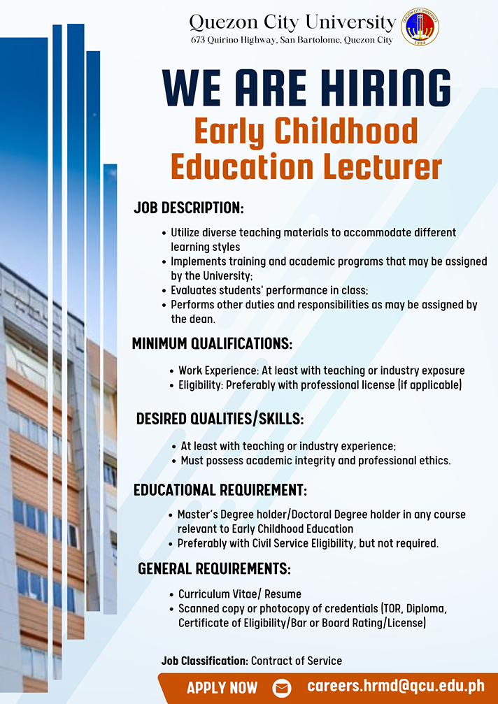 Quezon City University (QCU) is seeking passionate and dedicated educators to be part of our growing academic community!