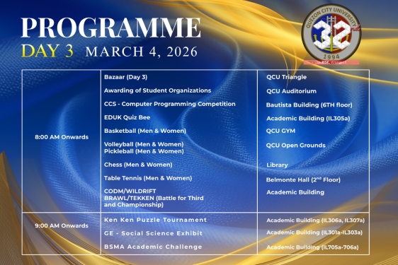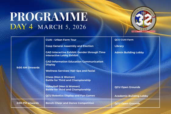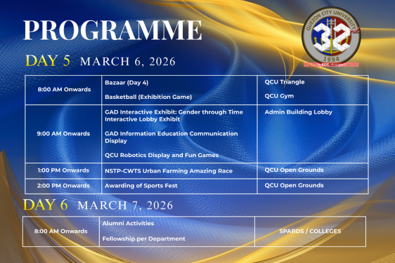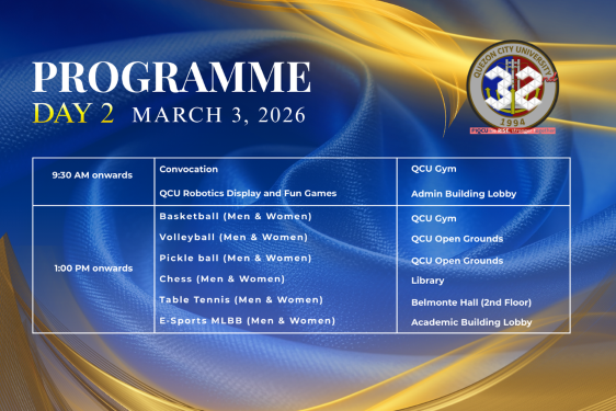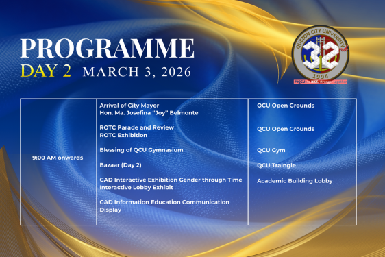 A key highlight of the week will be the Convocation on March 3, which will feature Hon. Mayor Ma. Josefina “Joy” Belmonte as the guest speaker. Her presence underscores the strong partnership between the university and the local government and is expected to inspire the academic community as QCU continues to strengthen its role in developing future leaders and professionals.