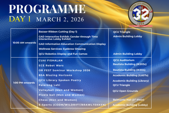 The celebration will open with a Thanksgiving Mass at the QCU Auditorium, offering the university community a meaningful opportunity to reflect on its journey and express gratitude for the milestones achieved over the years. This will be followed by a parade and flag ceremony at the open grounds, symbolizing the unity, resilience, and shared aspirations that continue to define the QCU community.