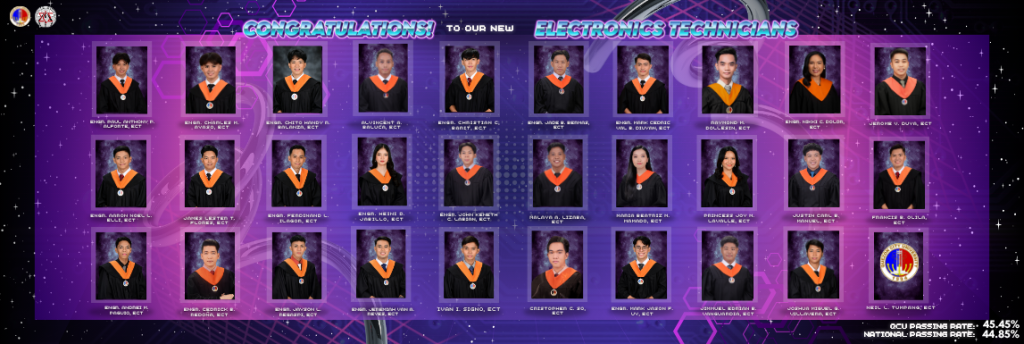 Quezon City University continues to shine bright as a hub of excellence in engineering and technology. Today, we celebrate the incredible achievement of our graduates who have successfully earned their licenses as Electronics Engineers and Electronics Technicians. Their dedication, perseverance, and brilliance have brought honor not only to themselves but to the entire QCU community.