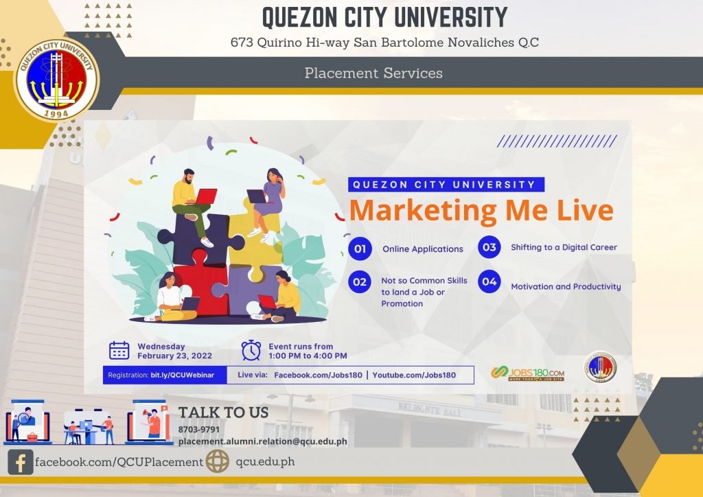 In preparation for the Virtual Career Fair on March 1, 2022, we are inviting everyone to join our webinar “Marketing ME Live” on Wednesday, February 23, 2022 at 1:00 PM.